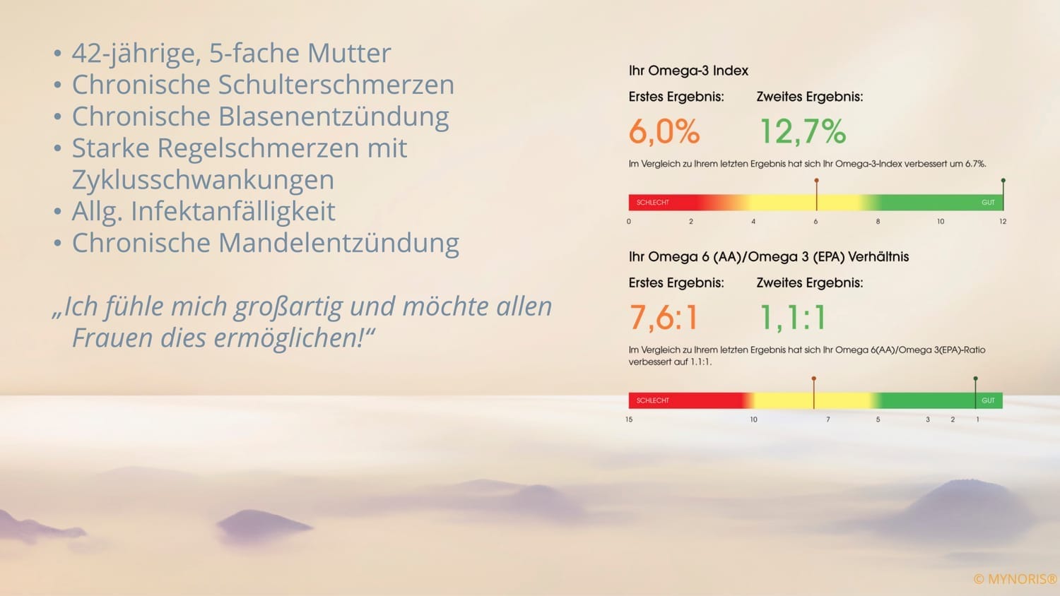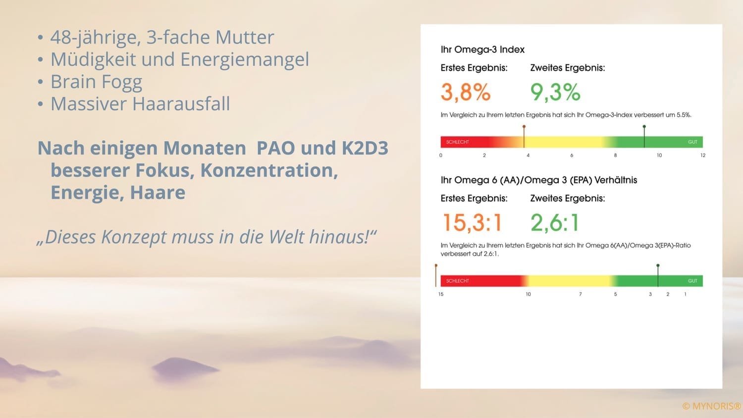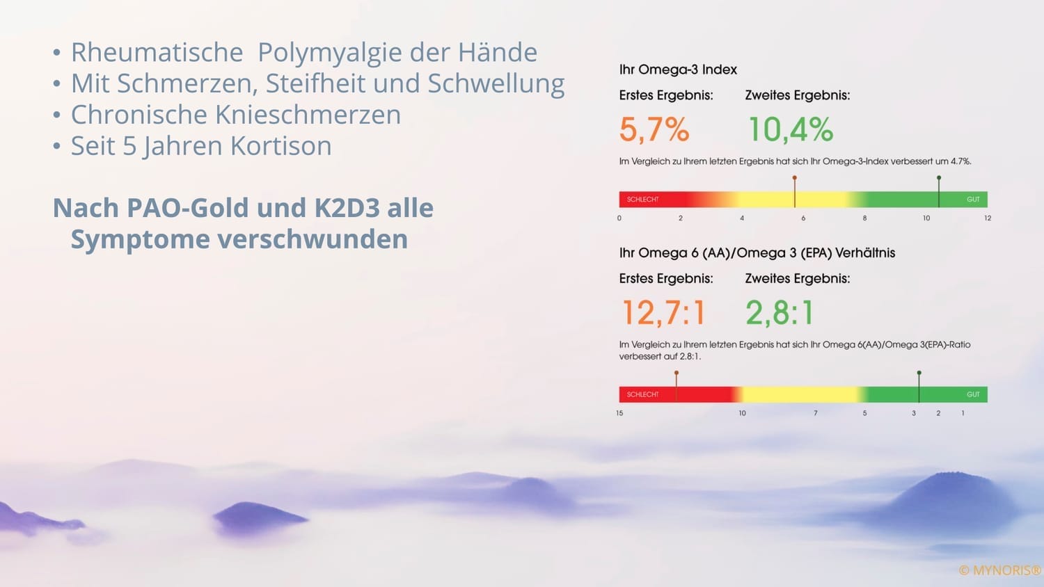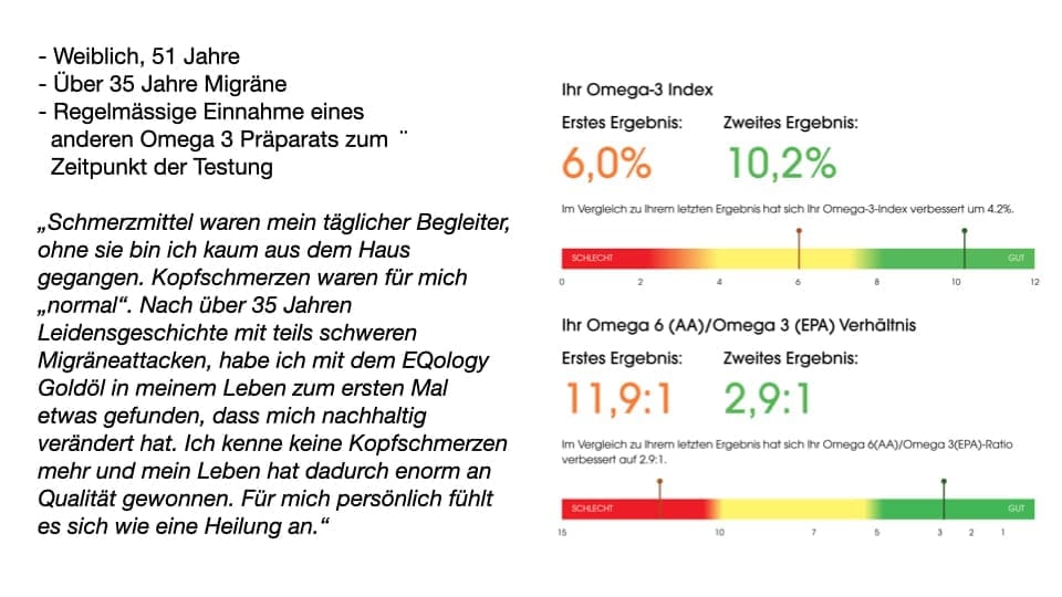 Zu den beeindruckenden Gesundheitsvorteilen von Omega-3 Fettsäuren, finden Sie ebenfalls subjektive Erfahrungsberichte und Beispiele von Testergebnissen sowie am Ende dieser Seite einen sachlichen Gesundheitsimpuls.